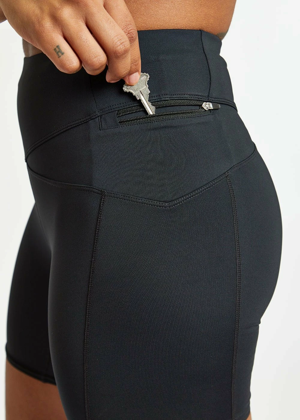 Power to these pockets! A new and well-reviewed design in our lineup, the Power Pocket Shorts have an asymmetrical waistband and an innovative pocket system. One side has a drop-in pocket along the wider part of the waistband, and then a small zip pocket on the other for items you want to keep secure. Best of all, the lightweight but supportive Plyaâ„¢ Compression keeps the legs in place, preventing both ride-up and chafe.Â